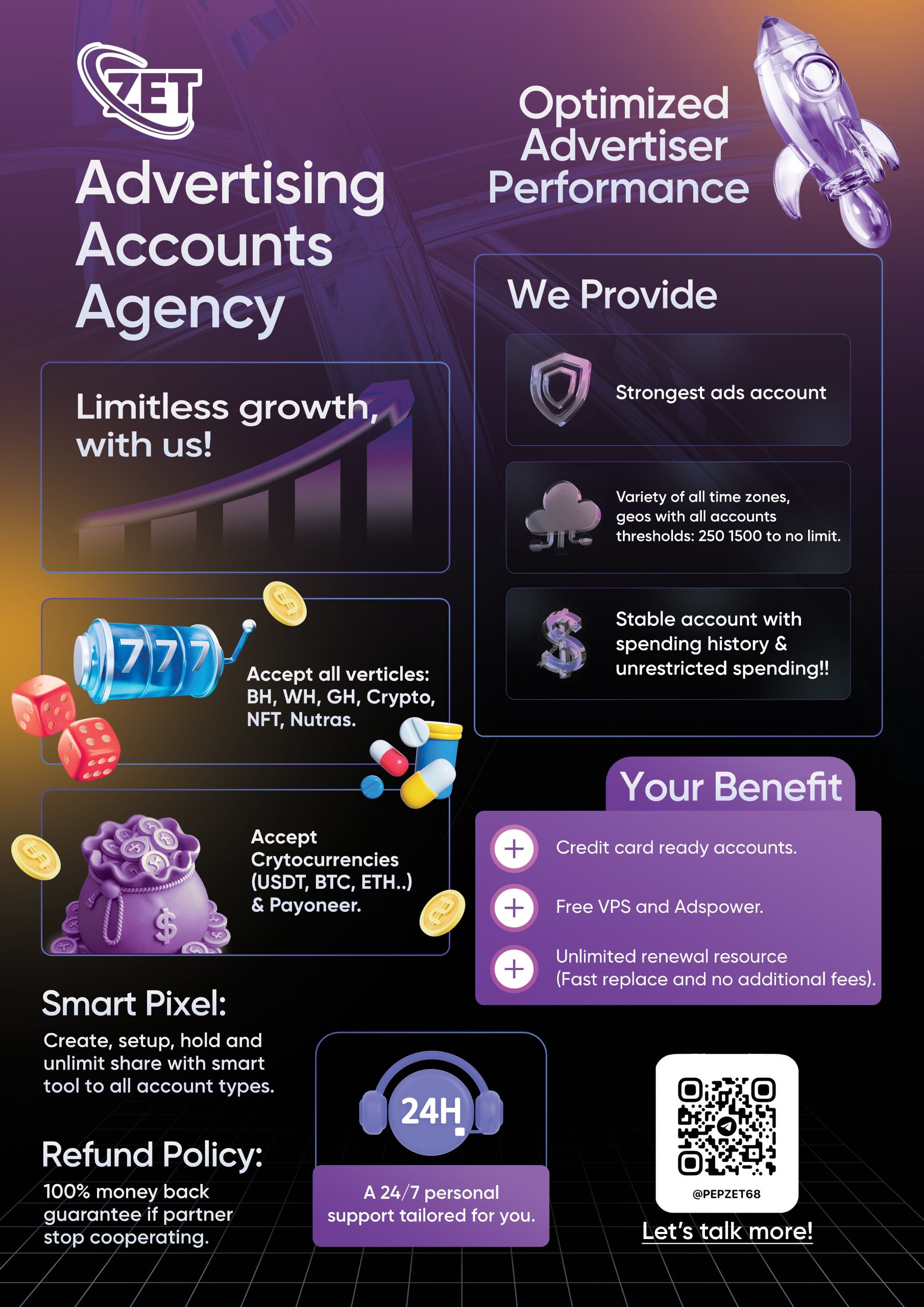 - Strong advertising accounts: Verified accounts, high limit, ready to operate.